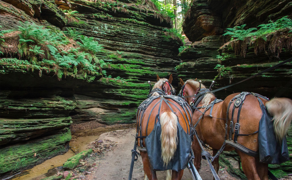 Lost Canyon is one of our top 10 family attractions in Wisconsin Dells because of the unique experience of riding a horse-drawn carriage through a canyon.
